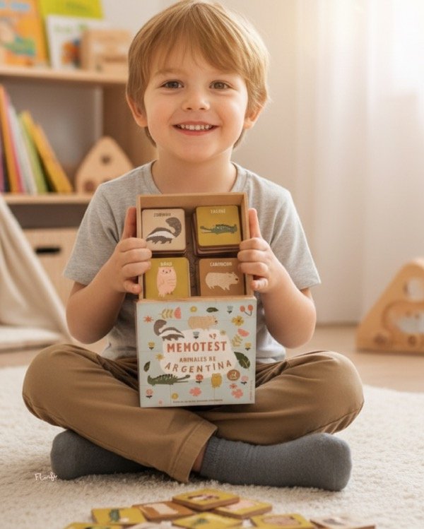 Este memotest incluye 32 fichas ilustradas con animales típicos de nuestro país, creadas con el encanto y estilo único de Florfi®.